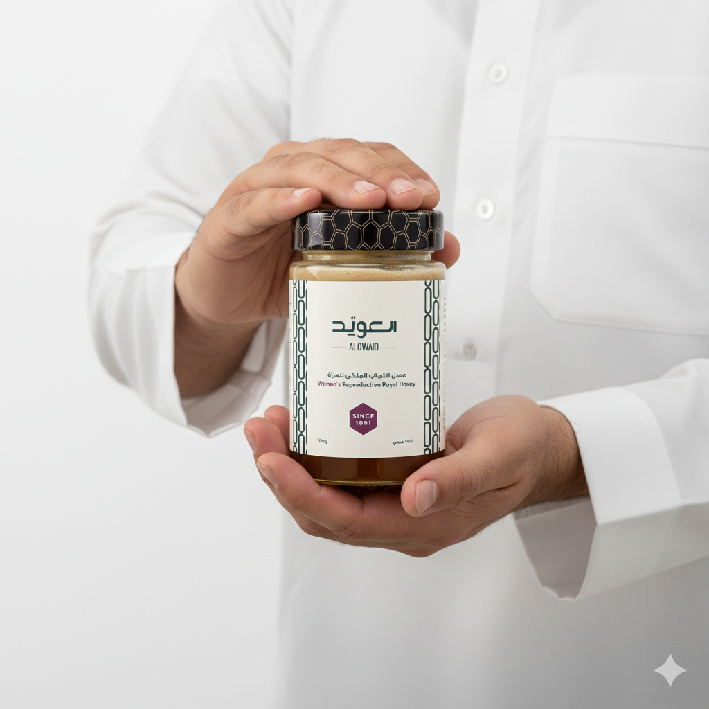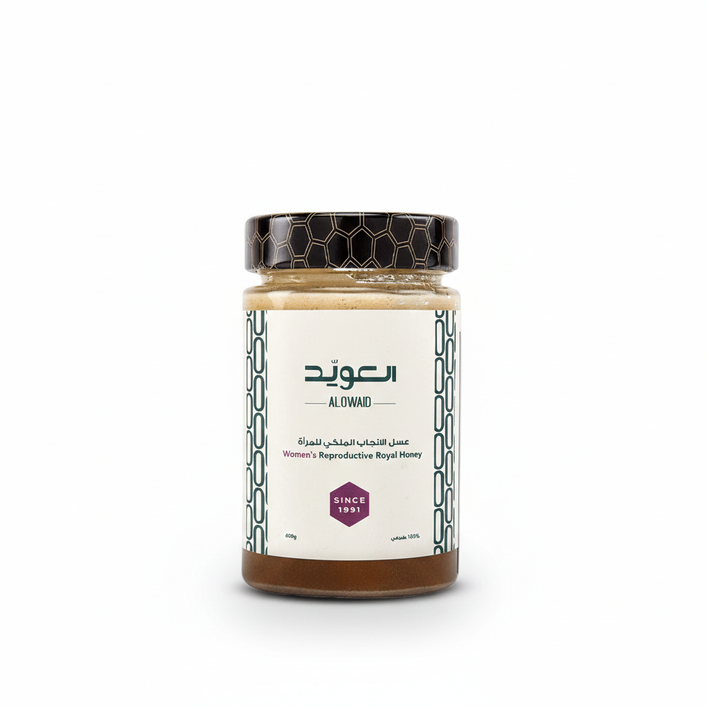 Experience the essence of wellness with Alowaid’s Royal Reproductive Honey, specifically formulated for women’s health. Established in 1991, our premium honey blend combines tradition with purity. This nutrient-rich “Royal” formula is crafted to support reproductive vitality and overall hormonal balance. Encased in a signature glass jar with a protective honeycomb-patterned lid, it’s a natural, daily supplement designed for the modern woman seeking a holistic approach to her well-being.